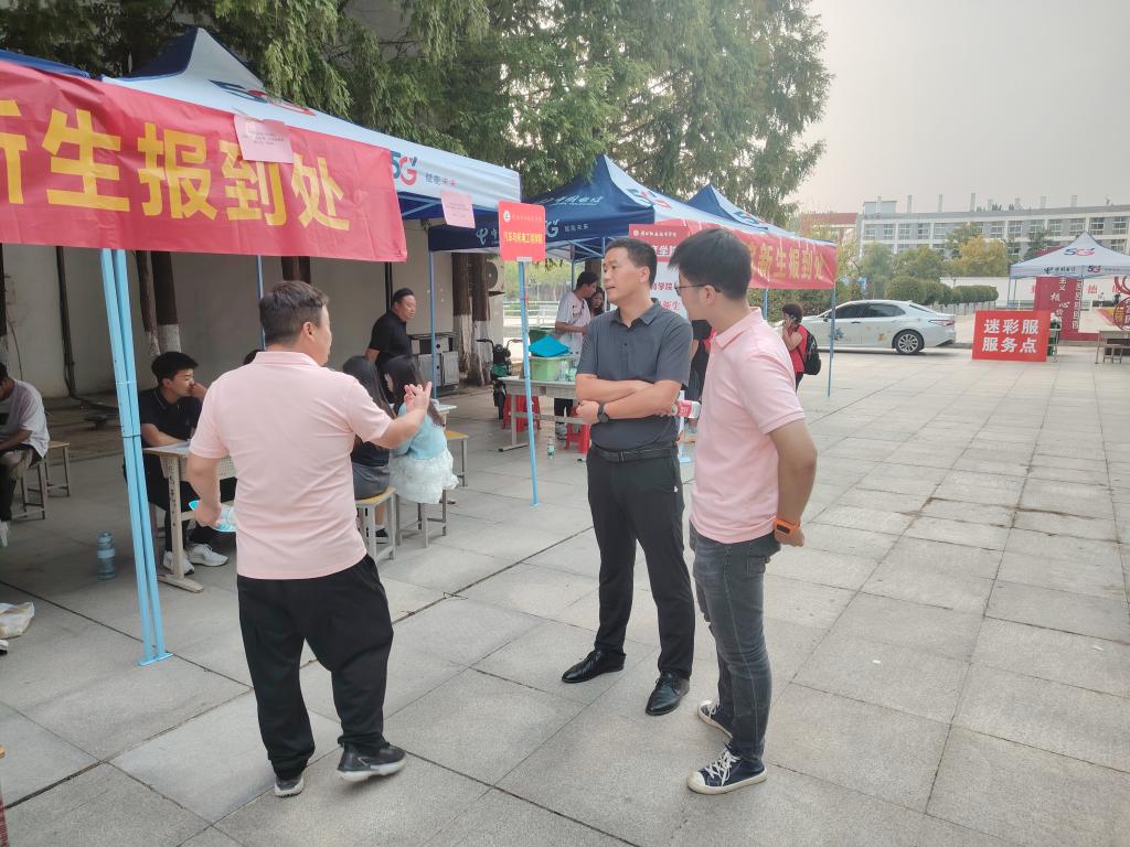 报到现场,辅导员忙碌地为新生办理入学手续,仔细核对信息、发放宿舍钥匙,耐心解答各种问题。公司领导也始终在迎新现场之间穿梭。他们与新生和家长亲切交流,了解他们的需求和期望,为新生们送上关怀和祝福。