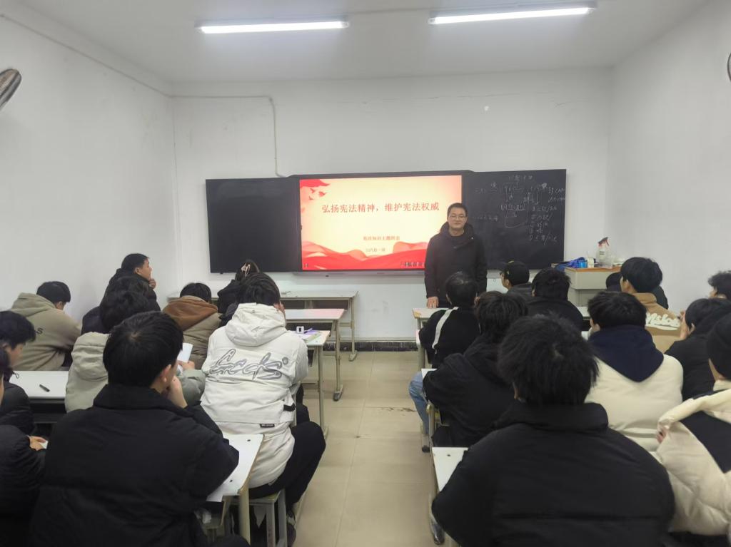 班会伊始,辅导员借助宪法知识PPT详细阐述了宪法的核心价值及其重要性,并着重指出了宪法作为国家根本大法所发挥的作用。使同学们对宪法的起源、发展历程、内容概要、修订历程以及政治规范有了深入的了解,并认识到它与个人权利与义务之间的紧密联系。此外,辅导员还讲解了关于宪法宣誓制度的知识及 宣誓誓词,同学们了解到国家公职人员在就职时必须进行公开宣誓,以示对宪法的忠诚以及为国家建设所抱持的坚定决心。