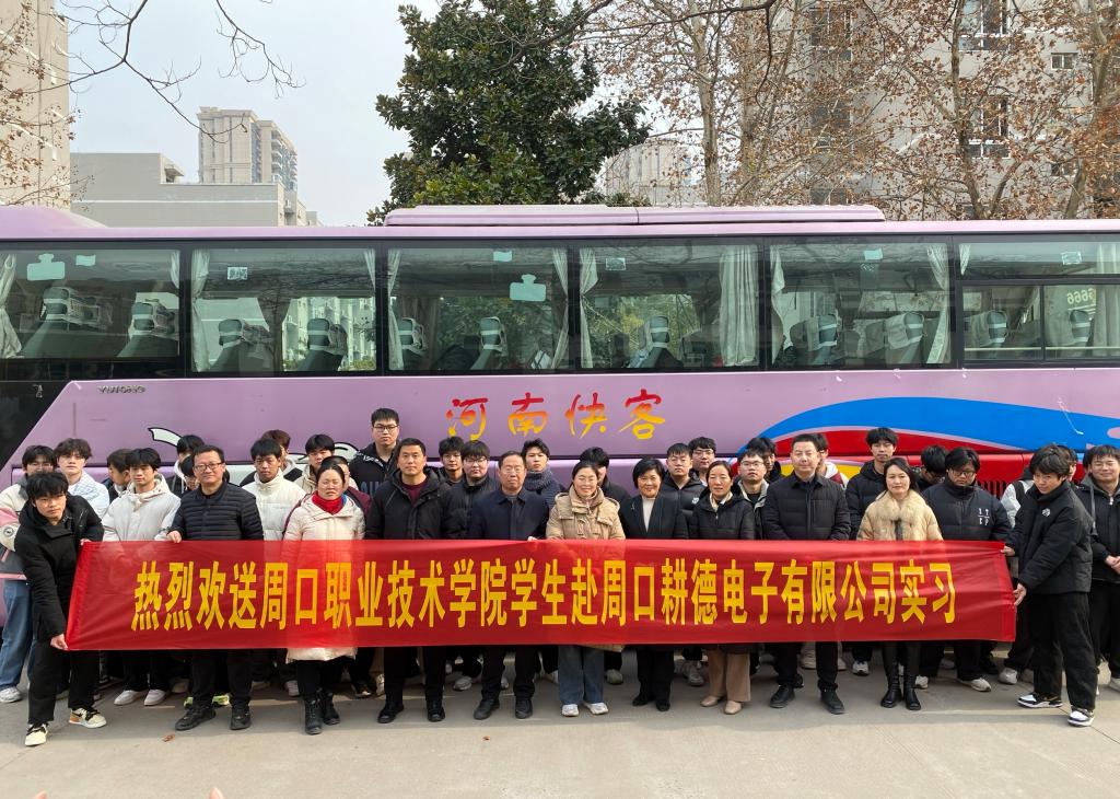 为提升人才培养质量和员工就业质量,推进产教融合,深化校企合作,12月27日,伟德国际bevictor23级机电一体化奔赴周口耕德电子有限公司实习,副董事长李秀萍、党总支书记崔东风、副经理王文立、学管办主任王亮、教学办主任丁兰花、综合办公室主任雷艳华出席现场,欢送实习生。