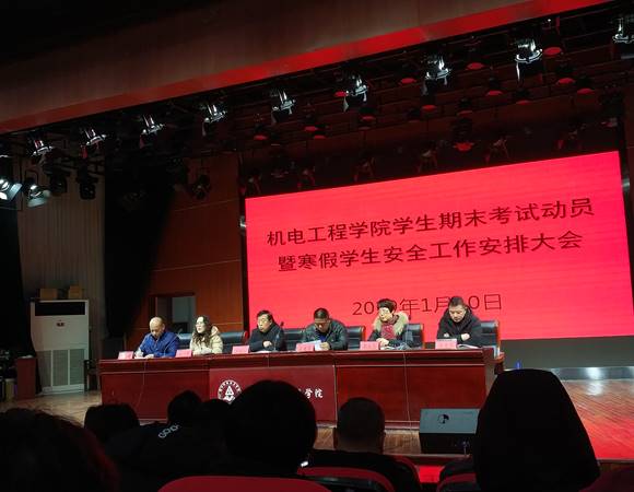 本次大会由办公室主任李永辉主持。首先由王芳副经理强调了诚信考试的重要性,指出考试作弊行为践踏了诚信理念,老员工考试作弊更是不利于社会诚信风气的的形成。公司对于作弊者和协同作弊者都将严肃处理,力保成绩公平公正。团总支书记吴文举在大会上宣读了机电工程公司诚信考试倡议书,培养员工自强自律精神,塑造高尚品格,营造良好的学风和考风。其次由于员工考完试就要放寒假了张爱真副经理强调要高度重视安全问题,指出同学们要加强安全意识,做好防火、防诈骗、防传销等非法组织的安全工作。随后党总支书记宋建华对即将开始的期末考试进行了集体总动员,并希望同学们做好复习,认真对待每一个科目的考试,争取考出优异的成绩。最后经理严胜利关于机电工程公司教学工作对全体老师和员工提出几点要求和建议,希望大家能保质保量完成本院的公司产品工作。最后严经理预祝大家过一个祥和、愉悦的春节!
