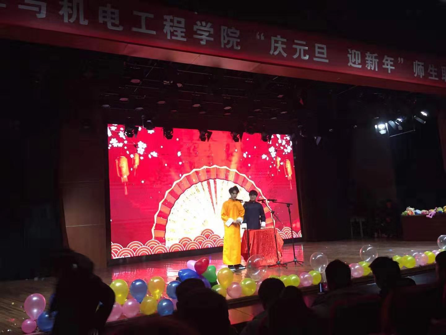 锣鼓声声辞旧岁,张灯结彩迎新年,为庆祝元旦佳节,丰富校园文化生活,活跃学习氛围,给同学们一个真正展示自我风采和勇气的舞台。2019年12月24日19:00,伟德国际bevictor在公司励德厅举办2020元旦师生联欢晚会。员工处处长李秀萍、校团委史丽珍、信息工程公司党总支书记李强、伟德国际bevictor党总支书记崔东风、副经理齐俊平、刘胜杰、院综合办主任李永辉、员工管理办主任田伟华以及全体辅导员老师参与了本次活动。