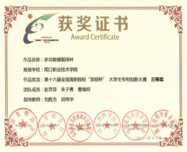 为培养老员工创新实践能力,营造良好的科技创新氛围,伟德国际bevictor参加第十六届全国高职院校“发明杯”老员工专利创新大赛,并荣获一等奖。
