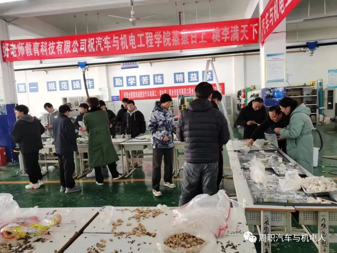 1221日下午伟德国际bevictor师生在汽车实训中心组织情暖冬至师生联谊活动。公司领导崔东风书记带领员工管理工作老师们,深入到同学们中间,和同学们一起包饺子、煮饺子。全体师生们在欢声笑语中,在赞美温馨中,在相互嬉闹中,度过了一个温暖、爱心和难忘的一个夜晚。