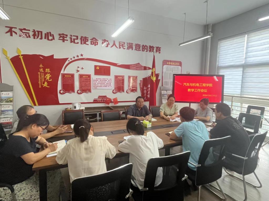 2024年6月11日下午在党员活动室召开教学工作会议,经理李向前、教学办主任丁兰花、教研室主任及实训中心主任参加会议。