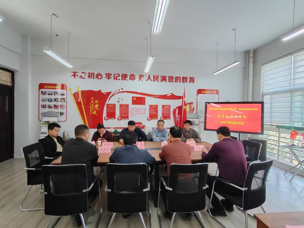 为推进校企合作、产教融合,3月26日上午,公司在党员活动室与河南凯旺电子科技股份有限公司召开校企合作洽谈会,班子成员、骨干教师参加会议。