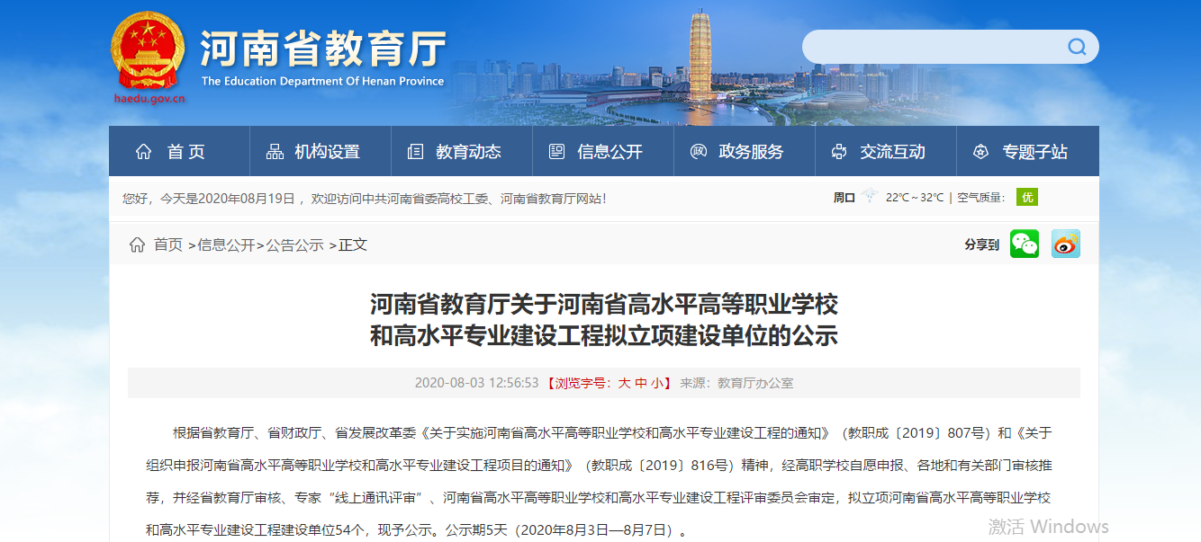 2020年8月3日,河南省教育厅发布《关于河南省高水平高等职业公司和高水平专业建设工程拟立项建设单位的公示》。1946伟德国际源自英国机电一体化技术专业群,成功入选河南省高等职业公司高水平专业群建设工程。