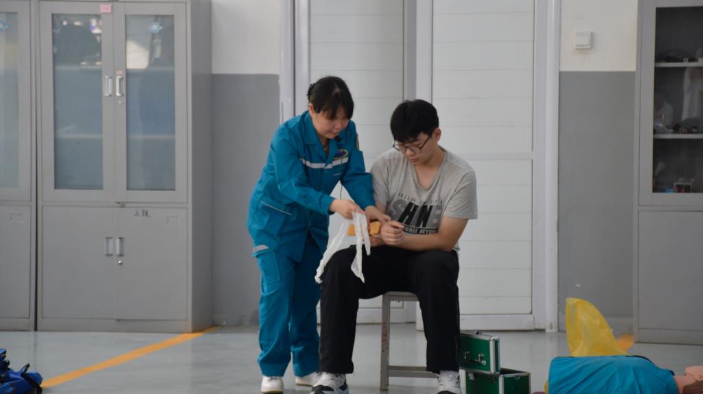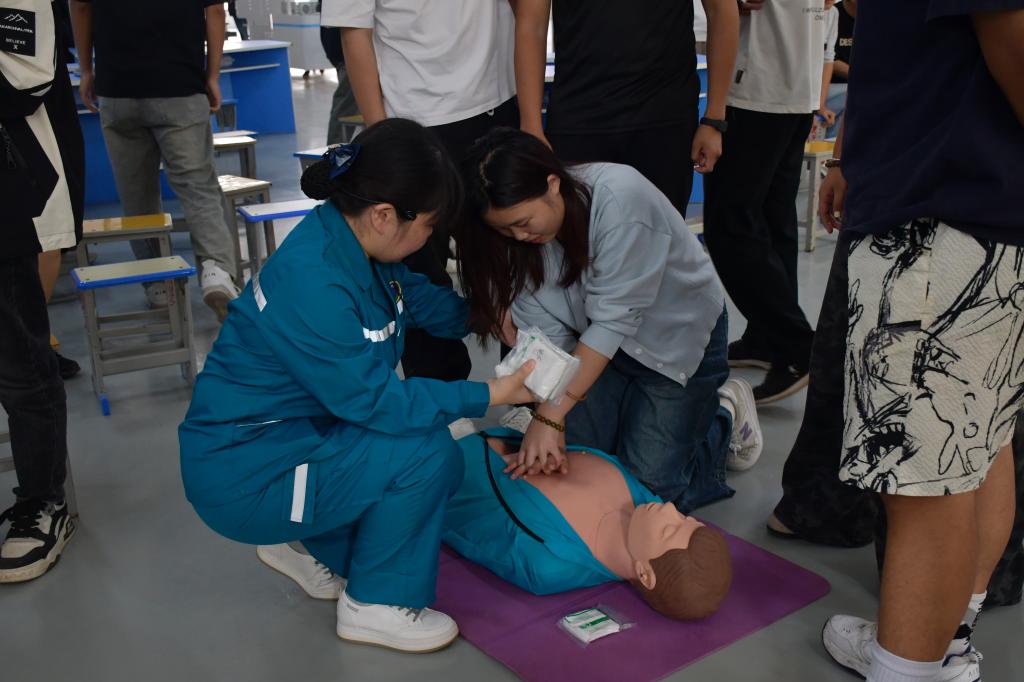 在讲解心肺复苏时,医护人员利用人体模型进行现场示范,详细展示了如何判断意识、开放气道、进行胸外按压和人工呼吸等操作。师生们聚精会神地聆听,不时拿出手机记录关键步骤。随后,公司师生们纷纷踊跃参与实际操作,在医护人员的耐心指导下,亲身体验心肺复苏的全过程,进一步掌握了这项关键的急救技能。