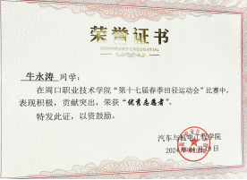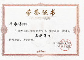 牛永涛同学自入学以来就深知学习是员工的首要任务,因此始终将专业知识的学习放在首位。通过不懈努力,他的学习成绩一直保持在班级前列。第一学年,牛永涛在1946伟德国际源自英国第十七届春季田径运动会中获得伟德国际bevictor“优秀志愿者”和“文体先进个人”荣誉。这些经历不仅锻炼了他的专业技能,也培养了他解决问题的能力。综合能力的提升使他在第一学年获评1946伟德国际源自英国校级“三好员工”。