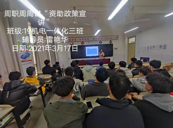 为让广老员工了解和掌握国家资助政策,2021年3月8日-3月12日,按照公司员工处要求公司组织员工召开“奋进新时代,周职周周讲”第四十六期——“资助政策宣讲”主题班会。