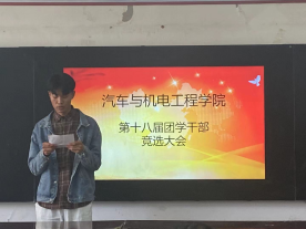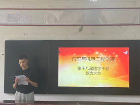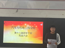 10月29日,公司在6242举行第十八届团学干部竞选大会,公司党总支书记崔东风、副经理刘胜杰、学管办主任田伟华、李哲老师以及26名员工会干事参加竞选大会。