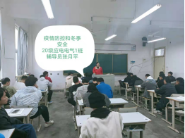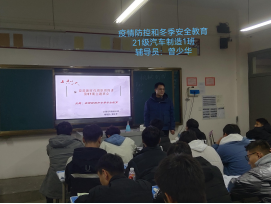 本次主题班会内容包括:1.疫情防控期间,非必要不外出,教育同学们要认清当前的疫情形势,做好自身防护,尽量减少出校和出市机会;2.做好安全教育工作,冬季天干物燥,禁止员工在宿舍使用大功率电器等违禁物品。