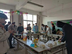 下午两点,活动在活动室热热闹闹的开始了,同学们热情高涨,早早的就来到了活动现场,都准备大显身手,老师同学们分工明确,老师负责切菜、准备饺子馅,同学们负责洗菜,准备活动所需要的餐具,活动现场异常的热闹,老师、同学们的欢声笑语在这个寒冷的冬天格外的暖心。