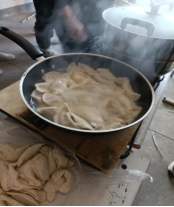 在一阵阵的欢声笑语中,饺子下锅了,每一个饺子都饱含了老师、同学们的爱,饺子在锅中不断地翻滚,蒸腾的香味弥漫在每一位同学的心间,让这个冬至格外的温暖。