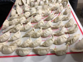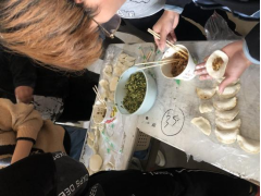 在简单的准备后,到场的男女生们纷纷撸起袖子,跃跃欲试,各班级要比试比试谁包的饺子漂亮,哪个班级包的饺子多,每一位同学都积极参与到活动中,同学们包的饺子格式各样,李兴伟同学包的麦穗形的、段成洋同学包的帽子形的、还有元宝样子的,每一位同学都用自己的方式表达了对家的思念,让每一位同学感受到家的味道。