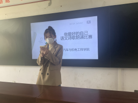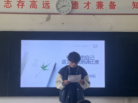 诗歌是思维的工具和情感的寄托,通过诗歌可以把人的思想和情感浓缩成为优美的词句。在比赛现场,参赛选手逐一登上讲台,用饱满的热情、激昂的语言朗诵诗歌,将自己的情感在诗歌中表达的淋漓尽致,在诗歌中展现出最好的自己。