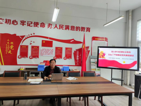 崔东风书记首先带着党员同志学习了《中国共产党纪律处分条例》,从《条例》修订的背景及意义、修订亮点、新旧《条例》对比、以严明的纪律推进党的自我革命四个方面,对新修订的《中国共产党纪律处分条例》进行全面系统、深入浅出的讲解,并结合典型案例对政治纪律、组织纪律、廉洁纪律、群众纪律、工作纪律、生活纪律“六大纪律”新增及修改情况进行重点解读,帮助党员教师全面深入领会《条例》的精神实质,准确把握《条例》的实践要求。